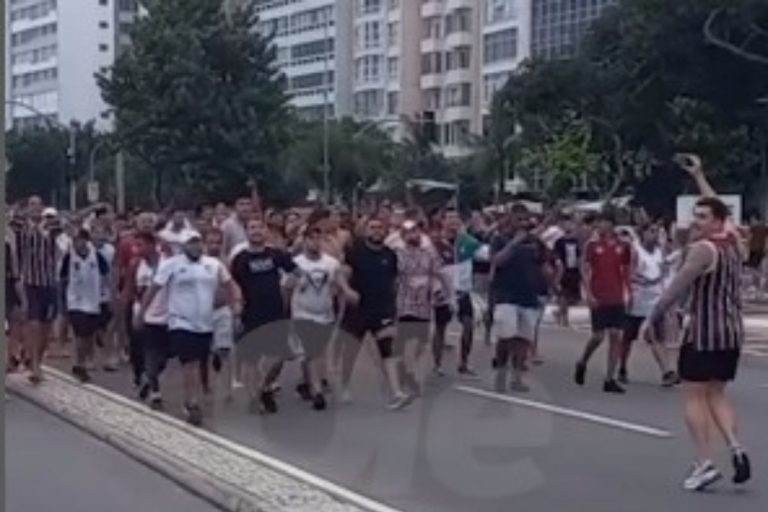Inclusive, tem um outro vídeo que circula mostrando torcedores do Fluminense aglomerados, em bloco, andando pela avenida. Depois, houve encontro e confronto com torcedores argentinos.