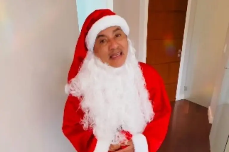Na noite deste domingo (24), Manoel Gomes se vestiu de Papai Noel em sua casal. Ou, ‘Papai Noelzi’, como ele gosta de dizer, por conta do seu sotaque peculiar.