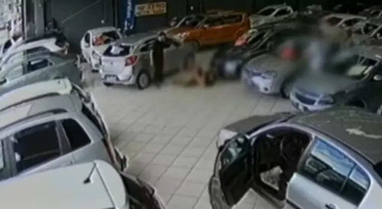 Inclusive, as imagens mostram quando o funcionário chega ao local e, depois, o atirador também chega e atira. A ação aconteceu próximo aos carros que estavam para a venda e na frente das pessoas.